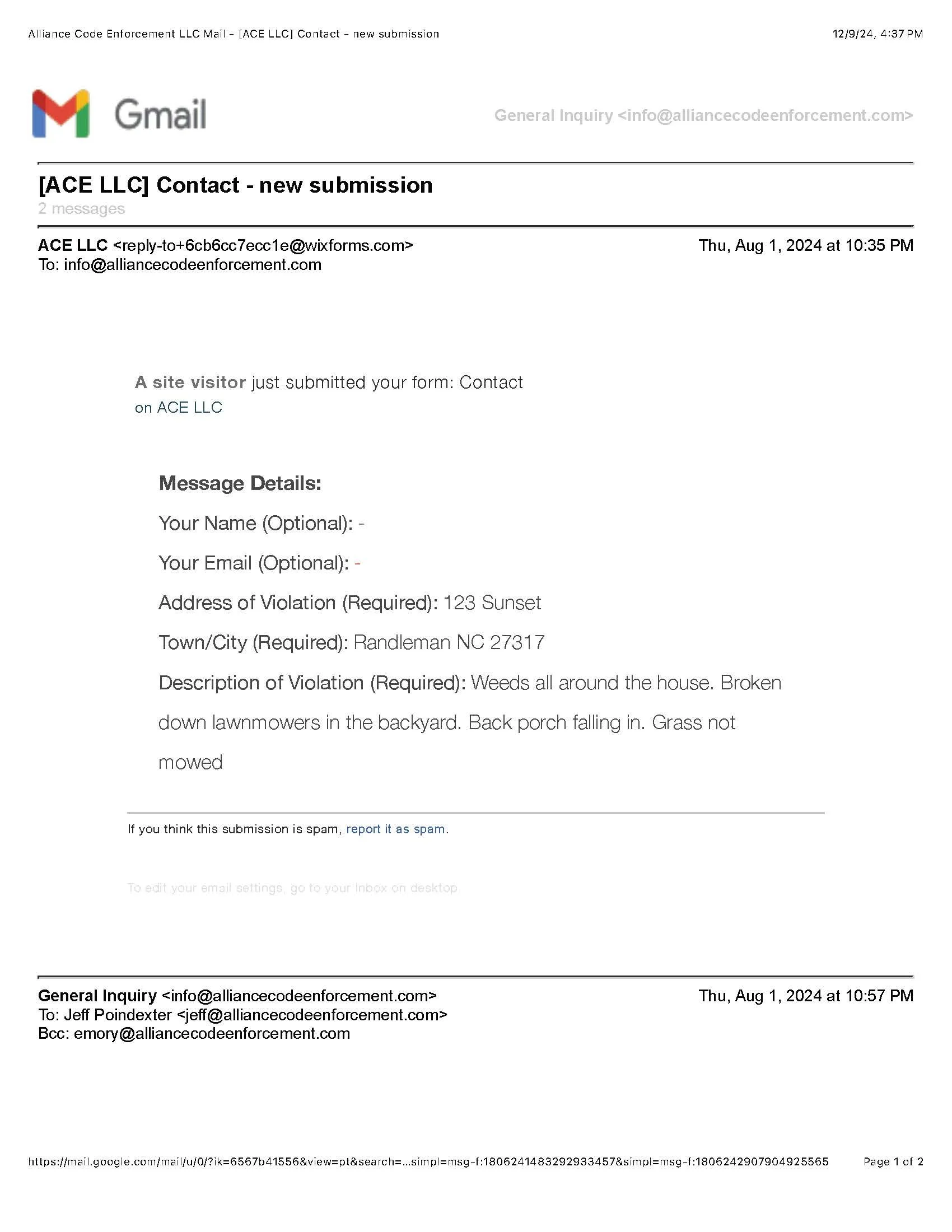 In response, we have released all complaints filed by Ms. Coble as well as all anonymous complaints filed in the City of Randleman.